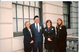 Bastard Nation on Beacon Hill, October 27, 2005. Janet Allen, Fred Rust, Bastardette, and Carla McBrine: Truth, Justice, and the American Way for Adoptees, too!
