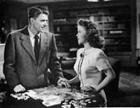 Ronald Reagan detested That Hagen Girl and made repeated attempts to be released from his contract, complaining about the mock incest plot. Reaction to the film was so bad at the sneak preview, in fact, that he was able to get his last line “I love you” excised from the final release. Reagan wrote later, “Before release the line was edited out of the picture, leaving us with a kind of oddball finish in which we climbed on a train—Shirley carrying a bouquet—and left town. You are left to guess as to whether we are married, just traveling together, or did I adopt her?” (My reference to this is in storage so I can’t list it here)