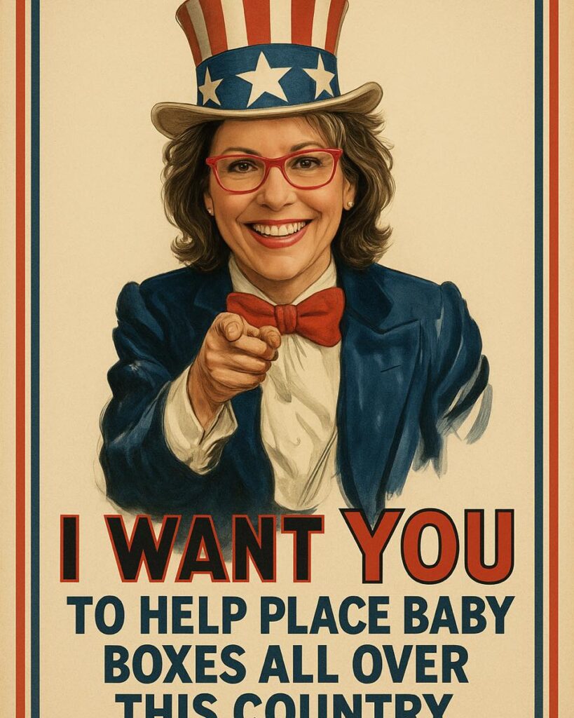 Mrs Kelsey says that one of her team came up with meme, not her. Fair enough! But I am sure that it warmed the cockles of her Benedict Bastard heart. In this era of toxic American nationalism, the meme message fits right in: Safe Haven Baby Boxes Inc–and Mrs Kelsey–are patriotic. Sticking your baby in a box-in-a-wall is patriotic. Adoption is patriotic.
